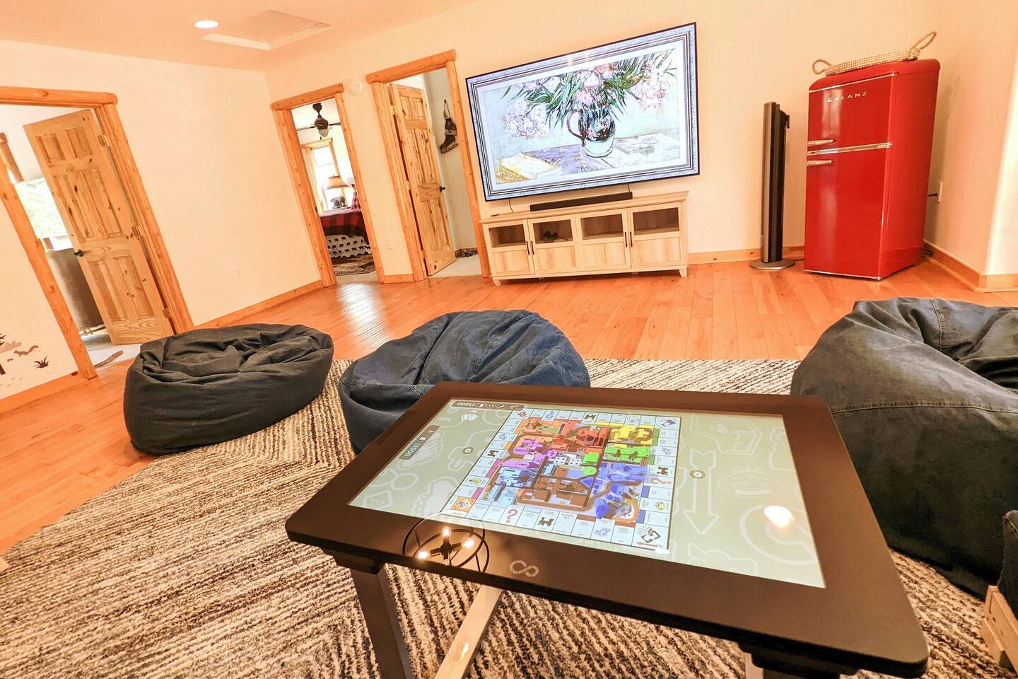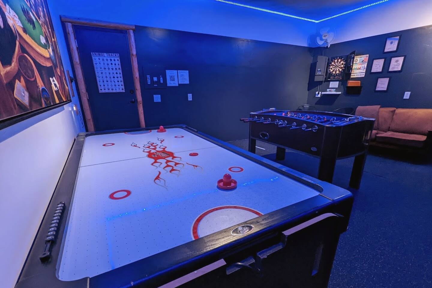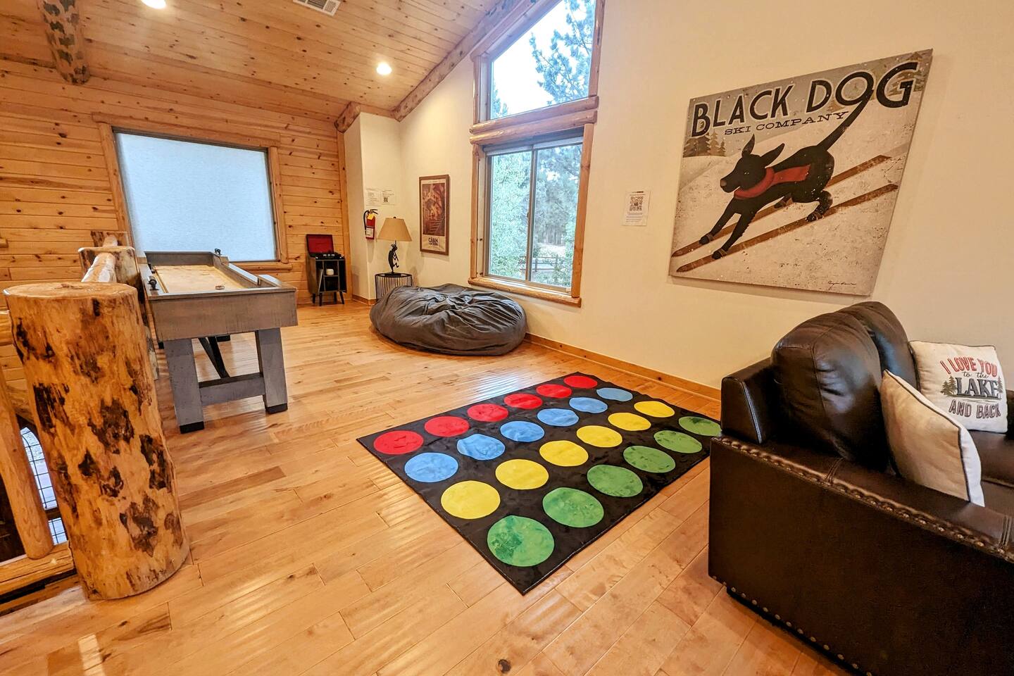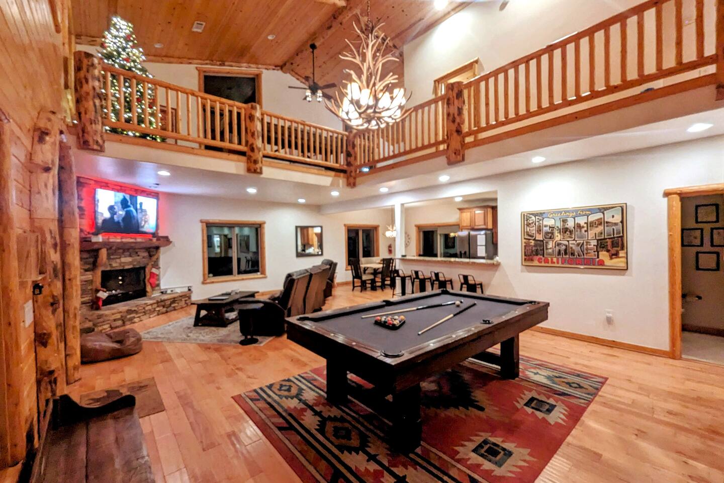 Escape to Big Bear, CA, in our 5 bedroom, 2 level cabin for up to 12 guests. Enjoy 7 x 4K TVs, multiple living areas, media room, a large loft, and a small gym. Stay entertained with foosball, air hockey, shuffleboard, horseshoes, cornhole, darts, and 1,000's of arcade games. The digital game board table adds a modern twist to classic board games. You'll be surrounded by wildlife and tranquility - it's the perfect retreat for you, your family and friends! Book your getaway today!