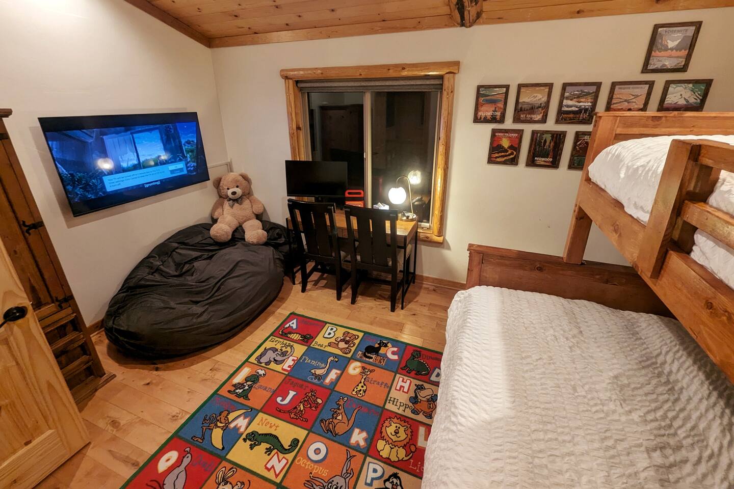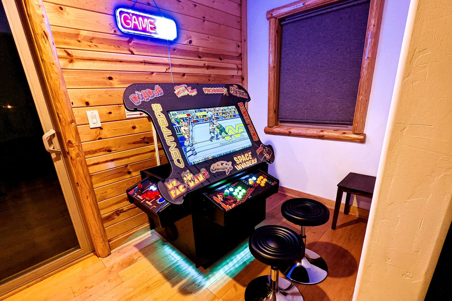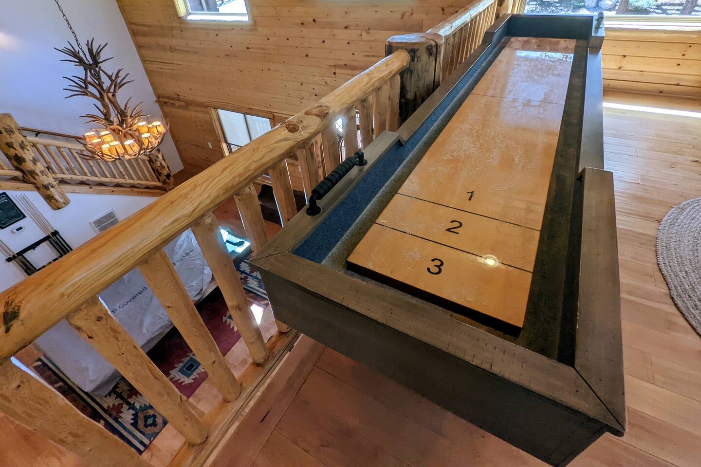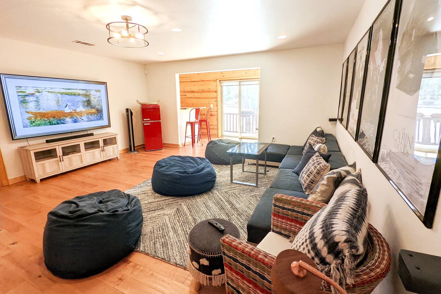 Escape to Big Bear, CA, in our 5 bedroom, 2 level cabin for up to 12 guests. Enjoy 7 x 4K TVs, multiple living areas, media room, a large loft, and a small gym. Stay entertained with foosball, air hockey, shuffleboard, horseshoes, cornhole, darts, and 1,000's of arcade games. The digital game board table adds a modern twist to classic board games. You'll be surrounded by wildlife and tranquility - it's the perfect retreat for you, your family and friends! Book your getaway today!