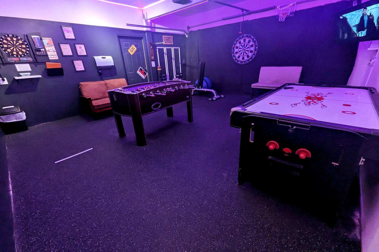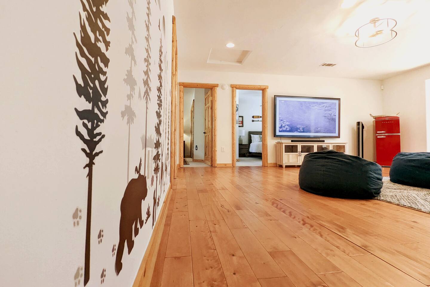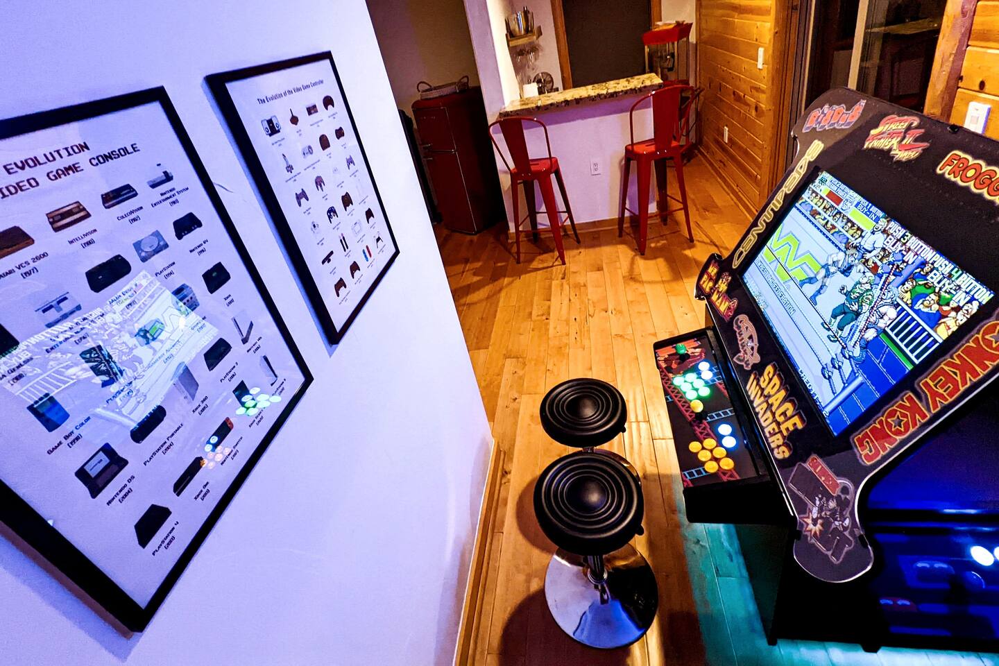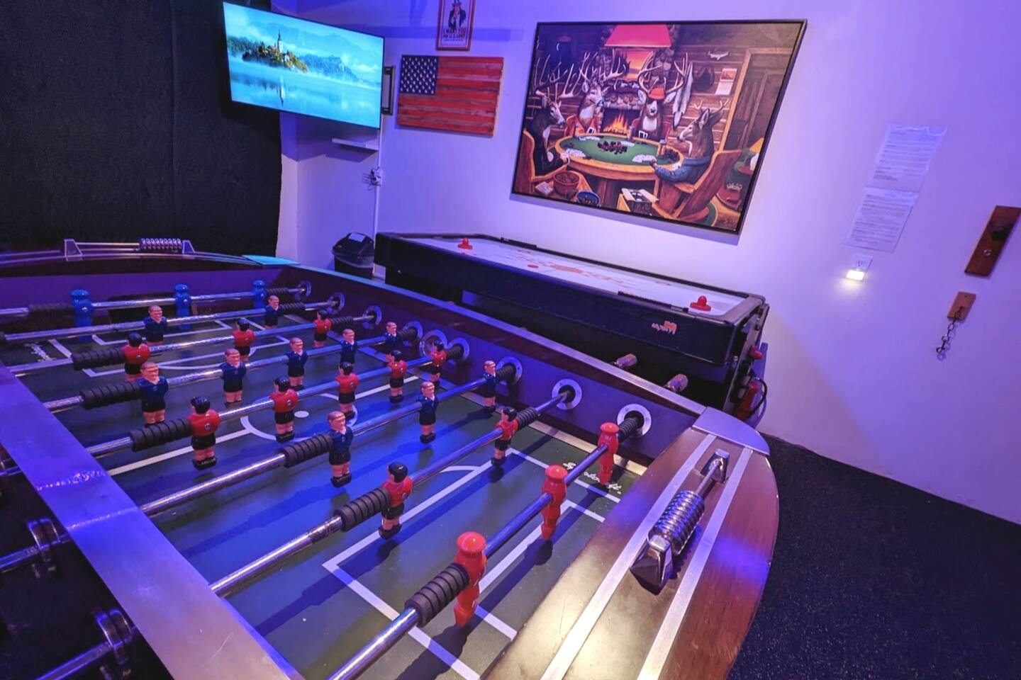 Escape to Big Bear, CA, in our 5 bedroom, 2 level cabin for up to 12 guests. Enjoy 7 x 4K TVs, multiple living areas, media room, a large loft, and a small gym. Stay entertained with foosball, air hockey, shuffleboard, horseshoes, cornhole, darts, and 1,000's of arcade games. The digital game board table adds a modern twist to classic board games. You'll be surrounded by wildlife and tranquility - it's the perfect retreat for you, your family and friends! Book your getaway today!