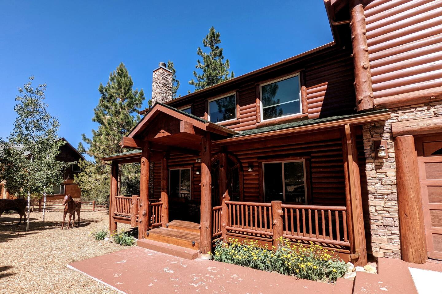 Escape to the ultimate mountain retreat at this luxurious 5 bedroom cabin, nestled amidst the breathtaking beauty of Big Bear, California. ★ Unwind in Style ★ This exquisite cabin boasts ample space to accommodate up to 12 guests, making it the perfect getaway for families and large groups. With 5 bedrooms, multiple living areas, and a large loft, everyone can find their own tranquil corner to relax and unwind. ★ Entertainment for All ★ Immerse yourselves in endless entertainment with 7 x 4K televisions (one that is 86"), an array of arcade games, and a digital board game table. Engage in friendly competition of foosball, shuffleboard, horseshoes, cornhole, and darts ... or challenge your friends to a round of air hockey. ★ Recharge and Rejuvenate ★ After a day of exploring the surrounding wilderness, soothe your muscles in the small gym. Unwind with a warm soak in the jacuzzi, or simply curl up by the fireplace with a good book. ★ Embrace the Natural Beauty ★ As the sun sets, step onto the expansive deck and marvel at the breathtaking views of the surrounding mountains. Observe the diverse wildlife that frequents the area, from majestic deer and wild donkeys to playful squirrels. ★ Your Mountain Oasis Awaits ★ This large cabin offers the perfect blend of relaxation, entertainment, and natural beauty, ensuring an unforgettable getaway for all. Book your stay today and experience Bel Air of Big Bear! ★ Features: ★ ✔ 5 bedrooms ✔ 12 person occupancy ✔ 7 x 4K televisions (86" in the Media Room) ✔ Multiple living rooms ✔ 2 levels ✔ Large loft ✔ Small gym ✔ Foosball table ✔ Shuffleboard table ✔ Air Hockey ✔ Dart Boards ✔ Horseshoes ✔ 1,000's of arcade games ✔ Digital board game table ✔ Relaxing with tons of wildlife ✔ High Speed Internet ✔ Whole House Audio System ✔ 2 Zone Heating System (Upstairs and Downstairs) ✔ On-Site EV Charger (Additional Fee) ★ Additional Details: ★ ✔ Pet friendly (previous approval required and, if so, 1 dog only) ✔ Fully equipped kitchen ✔ 2 High Capacity Washers and 2 High Capacity Dryers ✔ Outdoor BBQ ✔ Multiple Fire pits ✔ Classic Movie Theater Popcorn Machine ✔ Drip Coffee with Creamers, Sweeteners, and Filters ✔ Several Different Condiment Packets